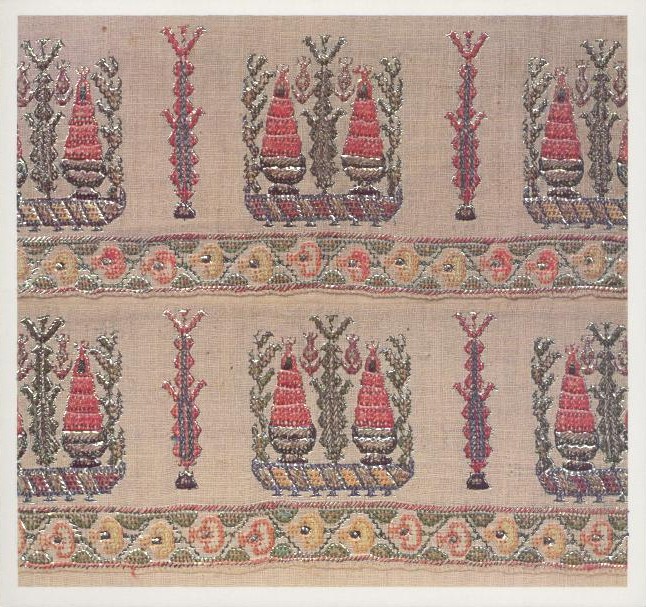 Bäume, Blüten und Rankwerk. Detail einer türkischen Stickerei, 19. Jahrhundert